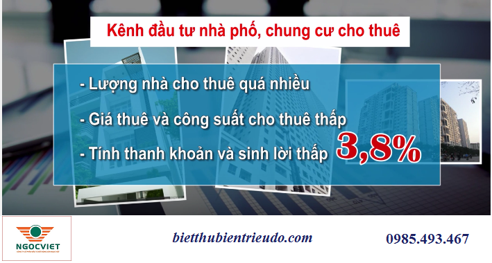 Với biệt thự biển Vinpearl Resort & Villas, chủ đầu tư Vingroup đưa ra chính sách chia sẻ 85% lợi nhuận thu được từ việc cho thuê lại biệt thự và cam kết sinh lời tối thiểu 10% 1 năm trong vòng 10 năm. Nhà trong phố hay chung cư không còn sở hữu lợi thế thanh khoản và sinh lời cao khi mà nguồn cung các dự án chung cư mới ra thị trường liên tục, khách hàng đều có cơ hội mua trực tiếp từ chủ đầu tư. Chính vì thế kênh đầu tư nhà phố hay chung cư cũng mất dần vị trí là kênh đầu tư số 1 khi lượng khách hàng thuê có hạn, lượng nhà cho thuê qua nhiều, giá thuê và công suất cho thuê thấp, đã khiến mức sinh lời trung bình của kênh này chỉ ở mức 3,8% một năm.
