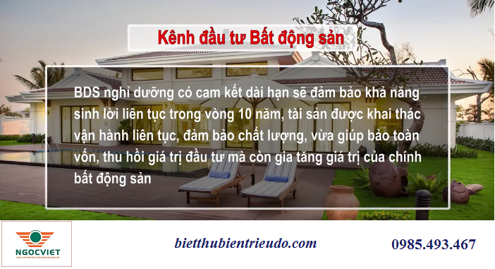 Các kênh đầu tư hiện tại được kể đến và so sánh gồm đầu tư tiền gửi tiết kiệm, đầu tư vàng ngoại tệ, đầu tư bất động sản, các căn hộ cho thuê khác trong bối cảnh thị trường bất động sản đầu tư đã thu hút sự quan tâm trở lại của các nhà đầu tư chuyên nghiệp. Từ đầu năm đến nay cho thấy bất động sản nghỉ dưỡng với cam kết dài hạn sẽ đảm bảo khả năng sinh lời liên tục trong vòng 10 năm, tài sản được khai thác vận hành liên tục, đảm bảo chất lượng, vừa giúp bảo toàn vốn, thu hồi giá trị đầu tư mà còn gia tăng giá trị của chính bất động sản.